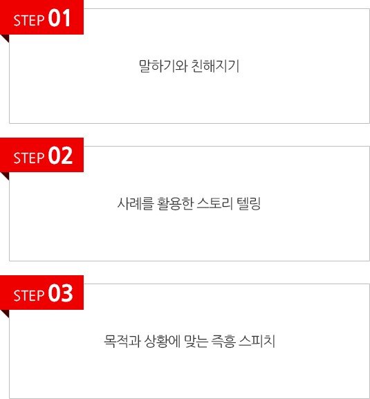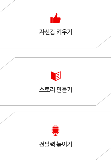사고력 기법을 통한 논리적말하기와 상대방에게 호감을 주는 스피치를 구성합니다.