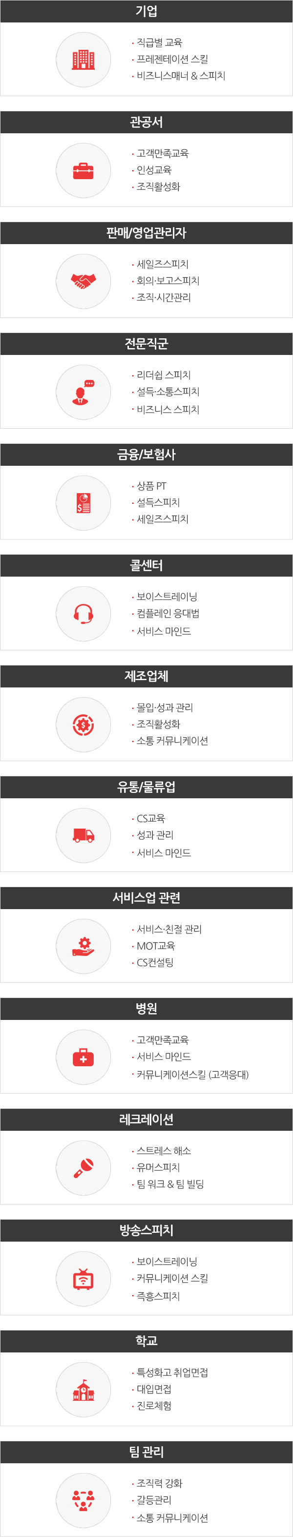 프리젠테이션부터 위기관리까지 고객사의 현황에 꼭 필요한 내용을 맞춤화해 교육을 진행합니다.