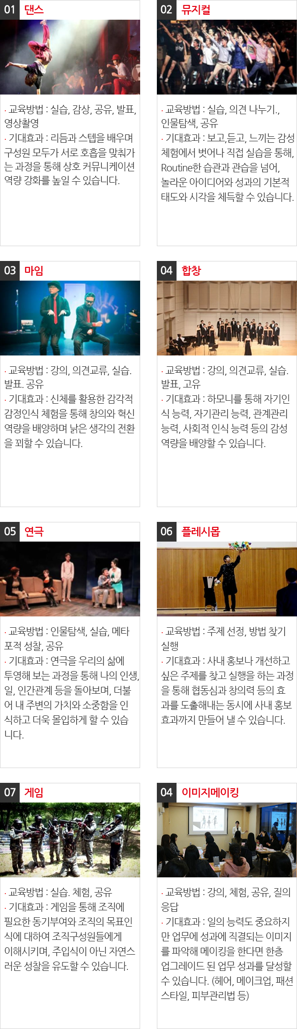 예술공연기반의 기업 비즈니스 교육 컨설팅 그룹입니다.