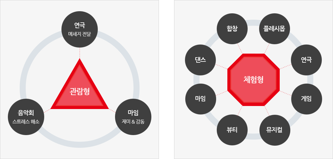 예술공연으로 재해석하여 기존 산업교육과는 차별화된 맞춤형 프로그램을 제공하고 있습니다.